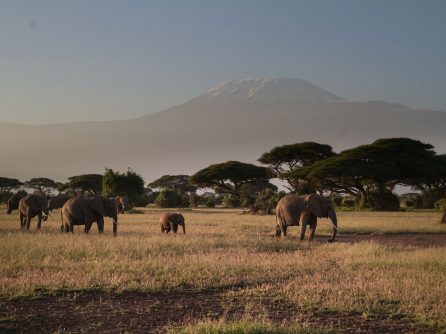 Amboseli National Park: The majestic Mount Kilimanjaro is a Kenyan safari must-see. She comes out from the mist in the early morning, while some of the largest tuskers you’ll ever see graze at her feet, and will spoil you with huge herds drinking water from surface springs. The park is home to as many as 370 species of birds and you can expect to see zebras, wildebeest, spotted hyenas, lions, cheetahs, giraffes, buffalo, warthogs, impalas, jackals, and leopards.